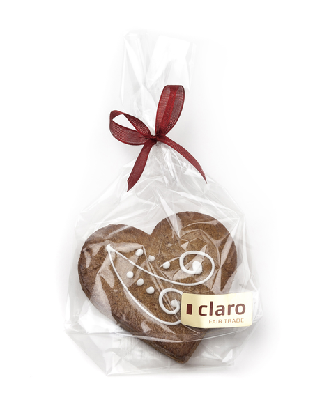Das Haselnusslebkuchenherz mit einer hübschen Zuckerverzierung wird mit Bio-/Fair Trade Zutaten nach traditioneller Art hergestellt.