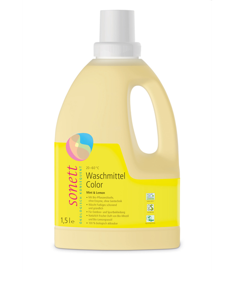 Die besondere, energiesparende Sonett-Methode des Verseifens ohne Zufuhr von Energie und der Einsatz von Ölen und ätherischen Ölen zu 100% aus kontrolliert biologischem Anbau sind wesentliche Qualitätsmerkmale des Waschmittels Color. Durch den Einsatz einer Kombination von Citraten und Seife ist bei allen Wasserhärten kein extra Enthärter notwendig. Für alle waschbaren bunten Textilien aus Baumwolle, Leinen, Hanf, Mikrofasern wie Fleece, Softshell, Goretex, sowie Mischgeweben, von 20–60 °C