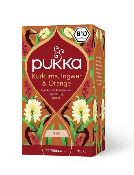 Bio-Kräutertee für ein aktives Leben: Pukka Kurkuma Aktiv ist ein wohltuender Bio-Kräutertee, der speziell entwickelt wurde, um den Körper zu revitalisieren. Die beflügelnde Mischung vereint feinste Kurkuma, würzigen Ingwer und aromatischen Galgant und schafft eine Teekreation, die dich in Bewegung hält. Kurkuma, bekannt für ihre entzündungshemmenden Eigenschaften und jahrhundertelange Anwendung in der traditionellen Heilkunst, wird durch die belebenden Kräfte von Ingwer und Galgant verstärkt. Gemeinsam können sie natürliche Unterstützung für Muskeln und Gelenke bieten. Diese Teemischung ist ideal für aktive Menschen und Abenteurer, die das Leben in vollen Zügen geniessen wollen. Pukka Kurkuma Aktiv bietet nicht nur Genuss, sondern kann auch zu einem gesunden und dynamischen Lebensstil beitragen. Neben der wertvollen Kurkuma enthält Pukka Kurkuma Aktiv auch Orangenschalenöl und weitere 100% biologische Zutaten, die aus ethisch vertretbaren Quellen stammen. Der Tee ist von Natur aus koffeinfrei und eignet sich perfekt für jede Tageszeit. Mit dieser Teemischung unterstützt du nicht nur deine Gesundheit, sondern auch umweltbewusste und faire Handelspraktiken.