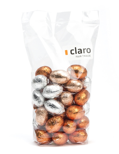 Feine Ostereier aus dunkler, veganer Bio-Schokolade – hergestellt mit Zutaten aus dem Fairem Handel.