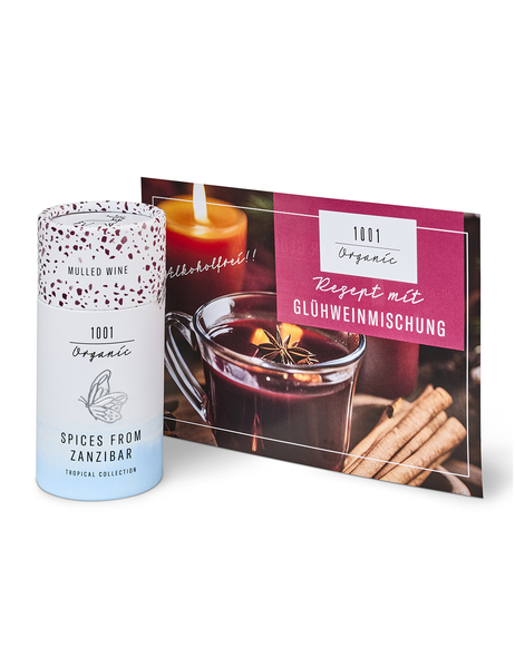 Glühweingewürz "1001 Nacht": Verleihe deinem Glühwein eine orientalische Note: Zimt, Sternanis und weitere edle Gewürze sorgen für einen warmen, würzigen Geschmack – perfekt für gemütliche Winterabende. Passt zu: Wein (1 Dose für 1,5l), Most, Sirup etc. Inkl. hübscher Rezeptkarte auf Deutsch.