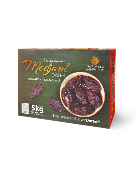 Un superaliment oriental haut de gamme : notre datte Medjool jumbo naturelle de Palestine est la reine des dattes : grosse, moelleuse et séduisante, elle dégage un arôme naturel de vanille et de caramel. Grâce à une méthode de récolte complexe, qui consiste à laisser les fruits mûrir complètement sur le palmier, elles développent tout leur arôme, sans aucun traitement artificiel. À chaque bouchée, tu soutiens des emplois équitables, des méthodes de culture durables et un projet qui profite autant à l'homme qu'à l'environnement.